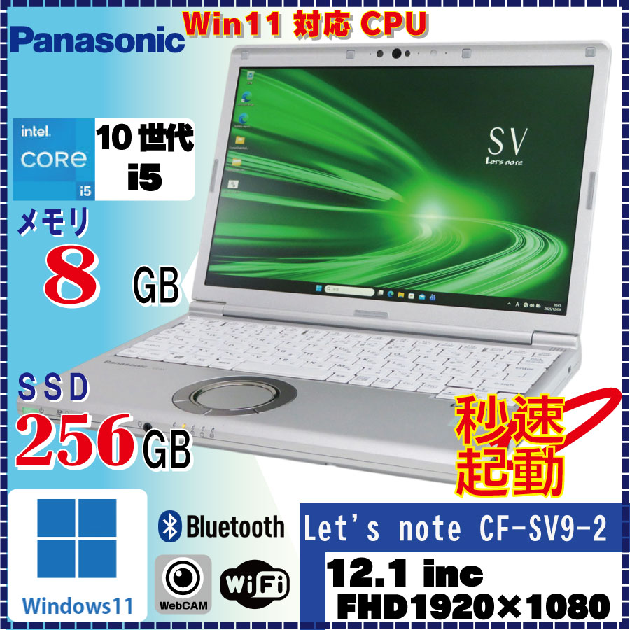 Panasonic Let's note CF-SV9-2(CF-SV9RDLVS) Core i5-10310U 8GB SSD256B (Win11Pro) 12.1インチ フルHD 1920×1080