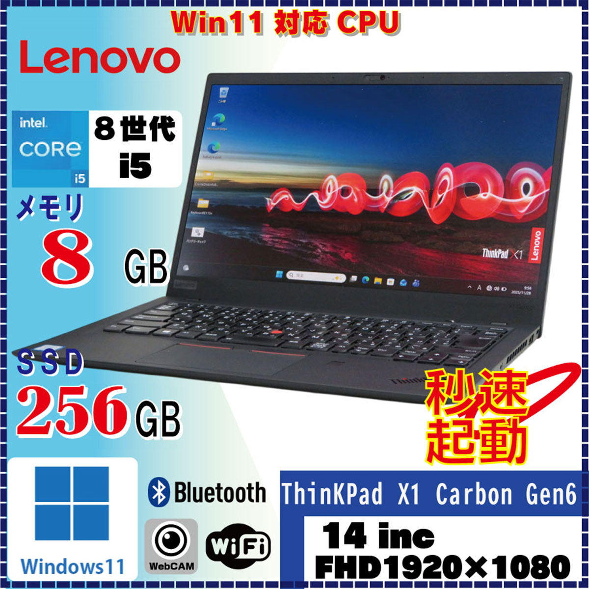 lenovo ThinkPad X1 Carbon Gen 6 Core i5-8250U 8GB SSD256GB (Win11Pro) FHD1920×1080 キーテカリ